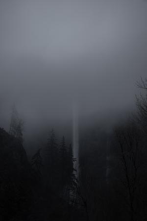 multnomah falls veiled by heavy fog
